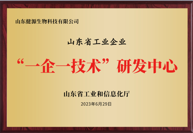 山東健源生物被認(rèn)定為2023年山東省“一企一技術(shù)”研發(fā)中心