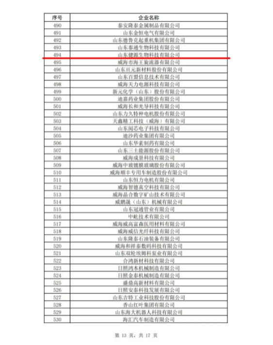 山東健源生物被認定為2023年度山東省瞪羚企業