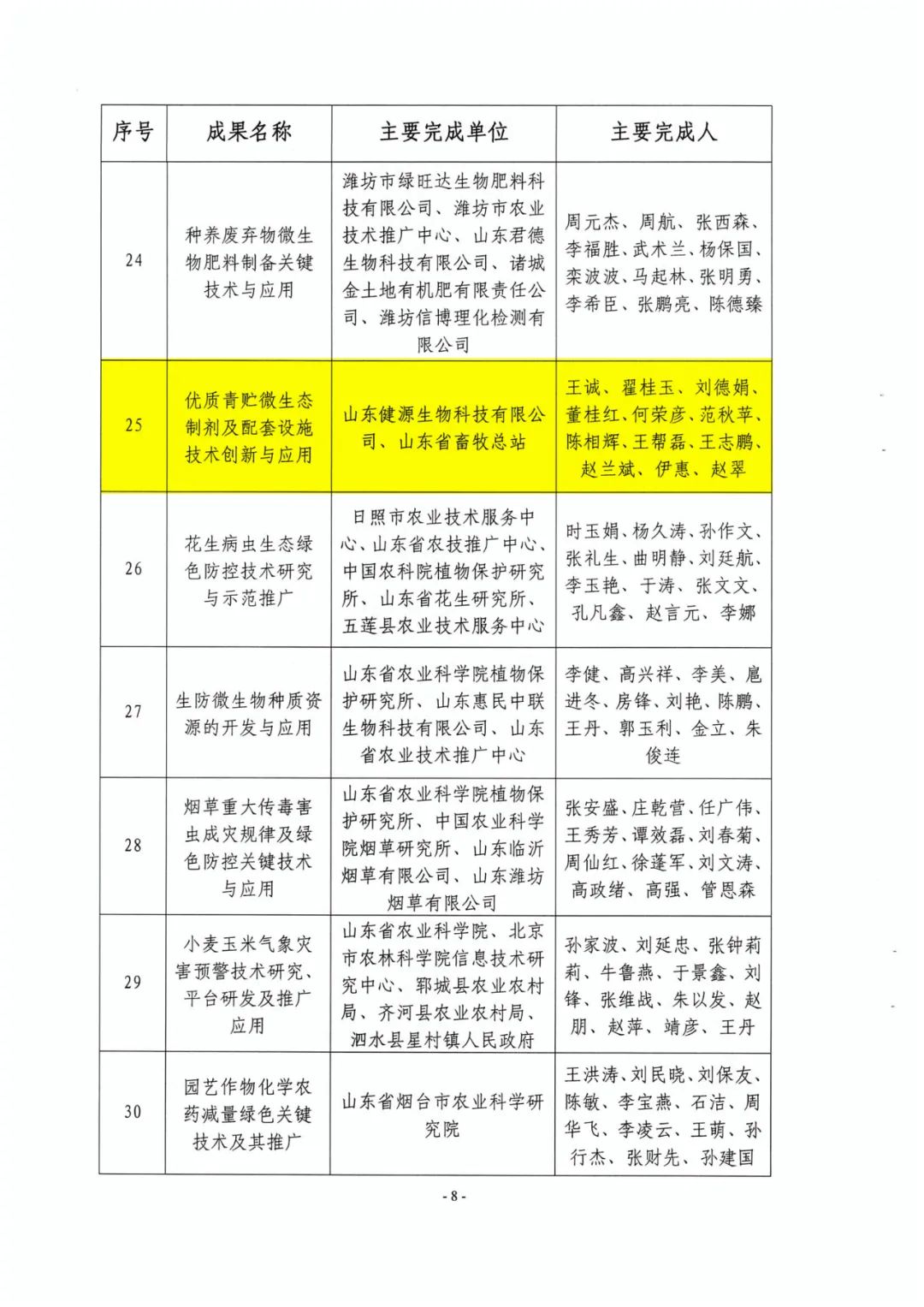 附:關(guān)于2022年度齊魯農(nóng)業(yè)科技獎(jiǎng)的表彰決定及健源獲獎(jiǎng)名錄