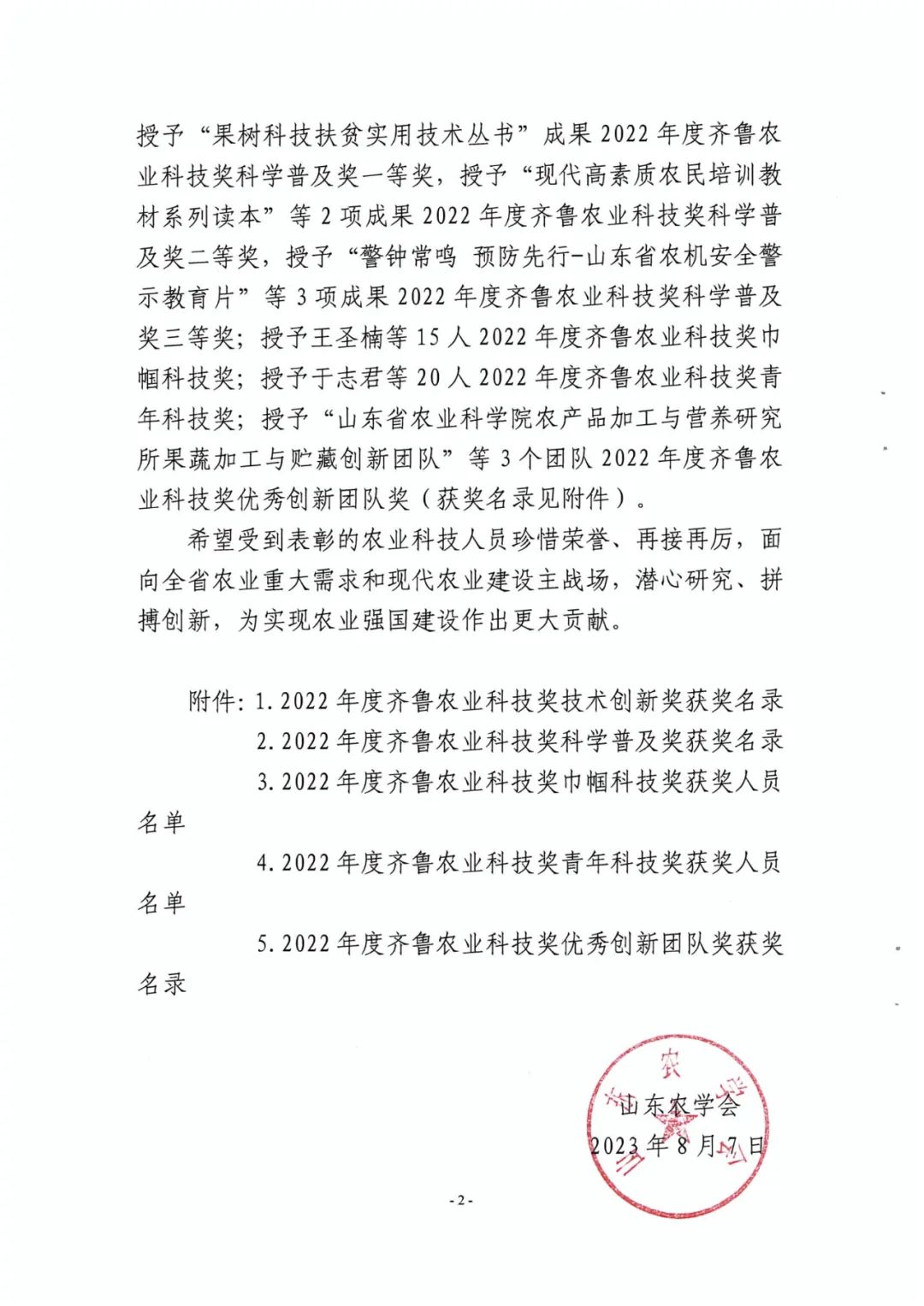 榮獲2022年度齊魯農(nóng)業(yè)科技獎(jiǎng)