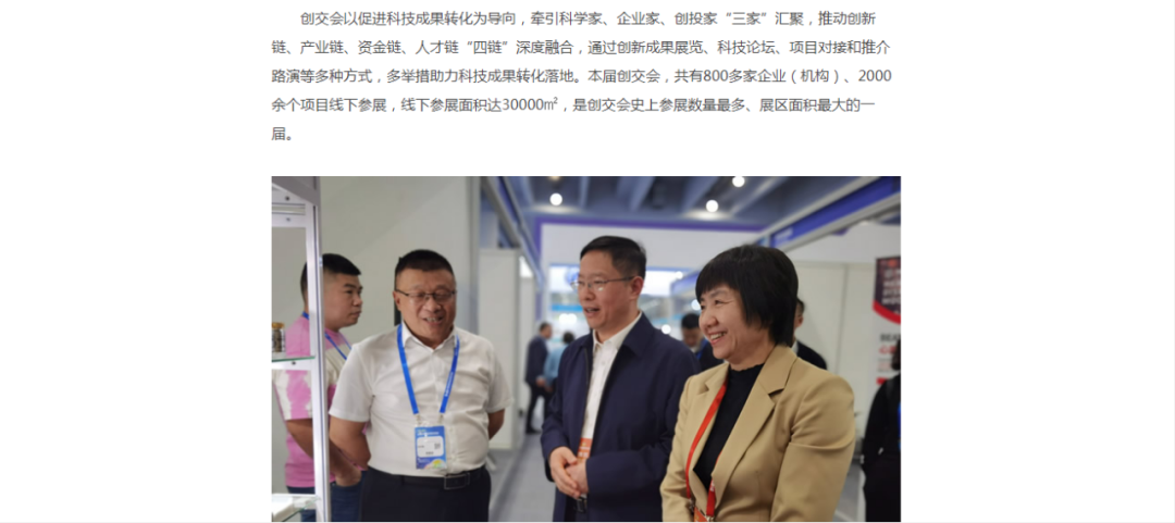 本屆創(chuàng)交會共有800多家企業(yè)(機構)、2000余個項目線下參展,其中線下參展企業(yè)中,361家具有“高新技術企業(yè)”、“小巨人”企業(yè)、“承擔國家或省(市)級重大科技創(chuàng)新項目”、“專精特新”企業(yè)資質,整體占比41.63%。線下參展面積達3萬平方米,覆蓋五大洲18個國家,是創(chuàng)交會史上參展數(shù)量最多、展區(qū)面積最大的一屆。