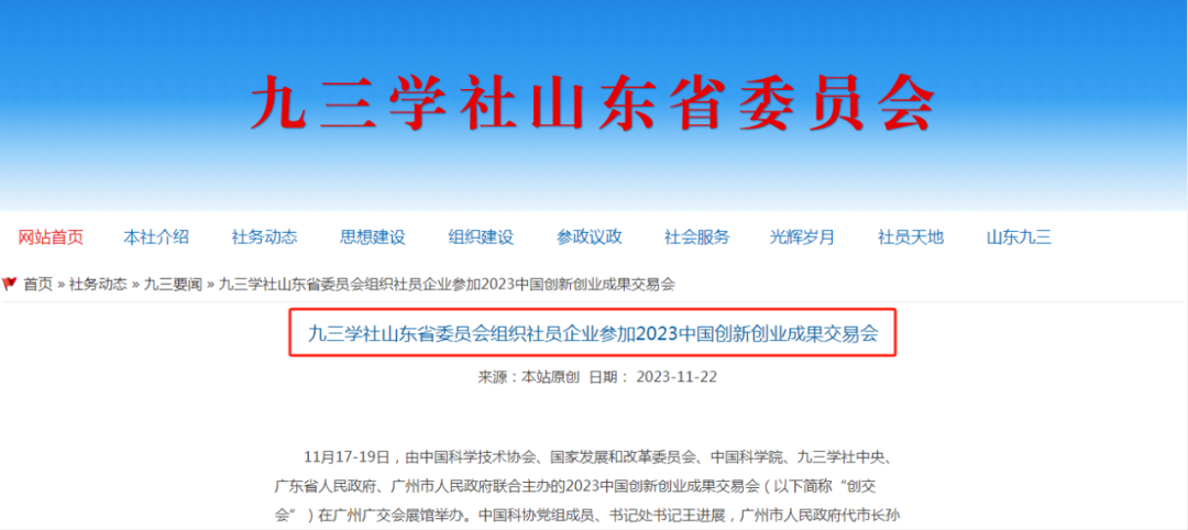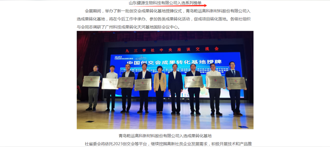 山東健源生物科技有限公司在此次創(chuàng)交會上的優(yōu)異表現(xiàn)也獲得了九三學社各級委員會的關注和報道。