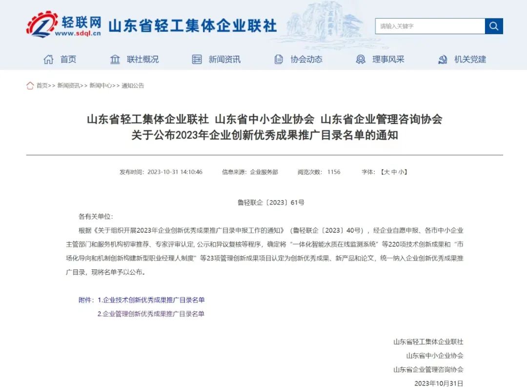 入選山東省企業(yè)創(chuàng)新成果推廣目錄
