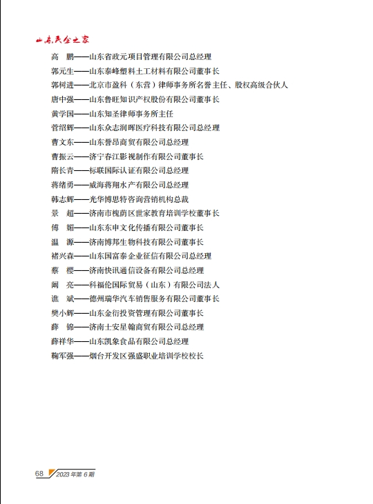 近日,在2023年度山東省民營企業家協會表彰評選活動中,經山東省民營企業家協會三屆十六次會長會議研究,報請協會三屆五次會員代表大會審議,決定增補山東健源生物科技有限公司董事長王誠為山東省民營企業家協會第三屆理事會常務理事。