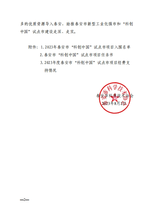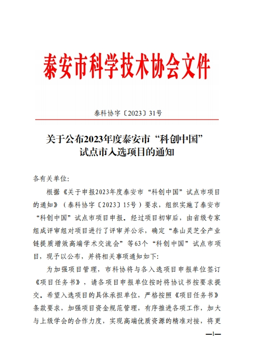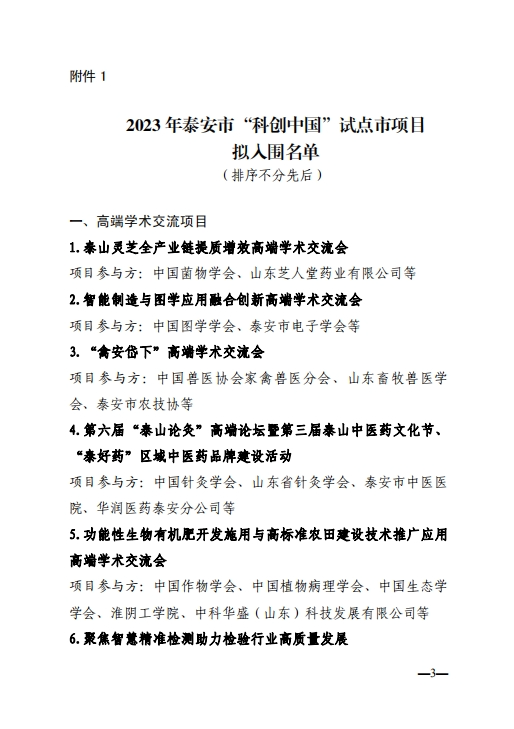 附:2023年泰安市“科創中國”試點市項目擬入圍名單