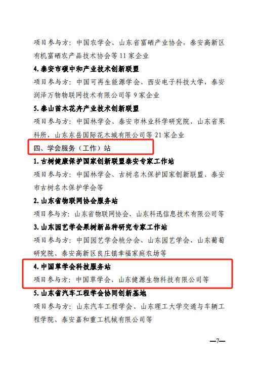 中國草學會泰安服務站落戶健源生物—“科創中國”試點市入選項目