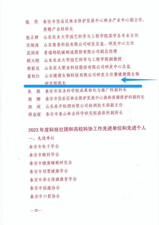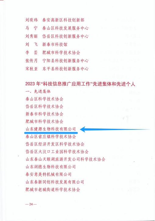 董事長王誠榮獲2023年“科技信息推廣應(yīng)用工作”先進(jìn)個人,健源生物榮獲先進(jìn)集體