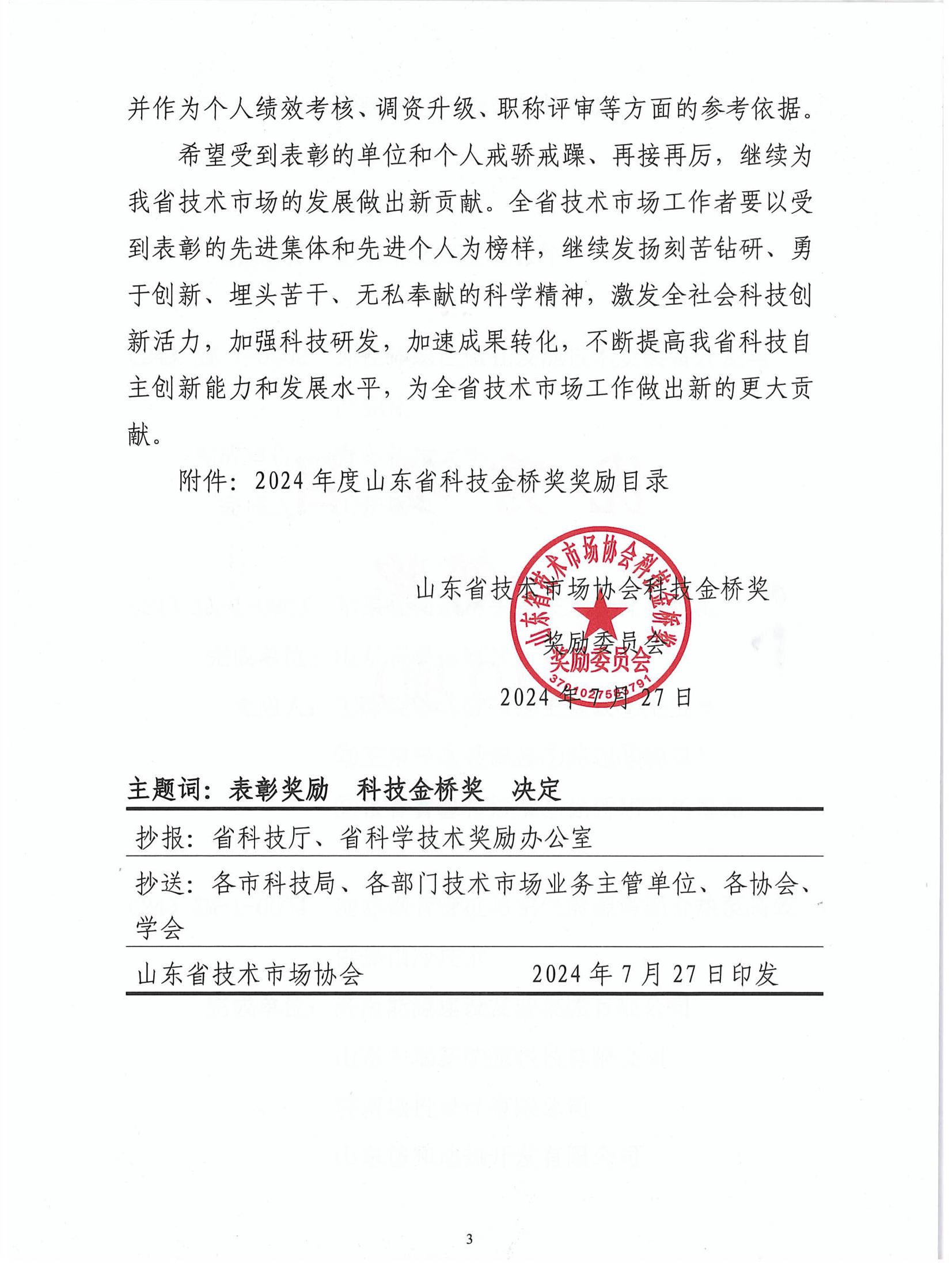 山東省技術(shù)市場協(xié)會科技金橋獎