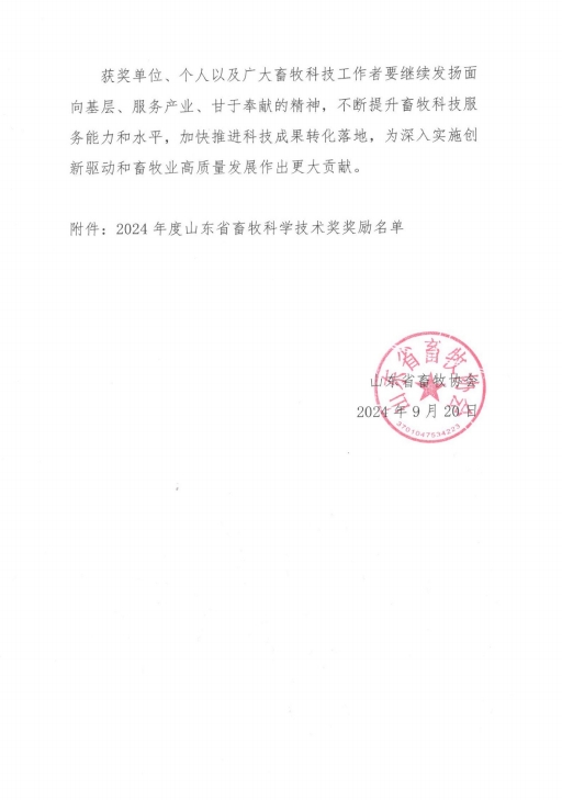 健源生物榮獲山東省畜牧科學技術獎科學技術成果獎一等獎