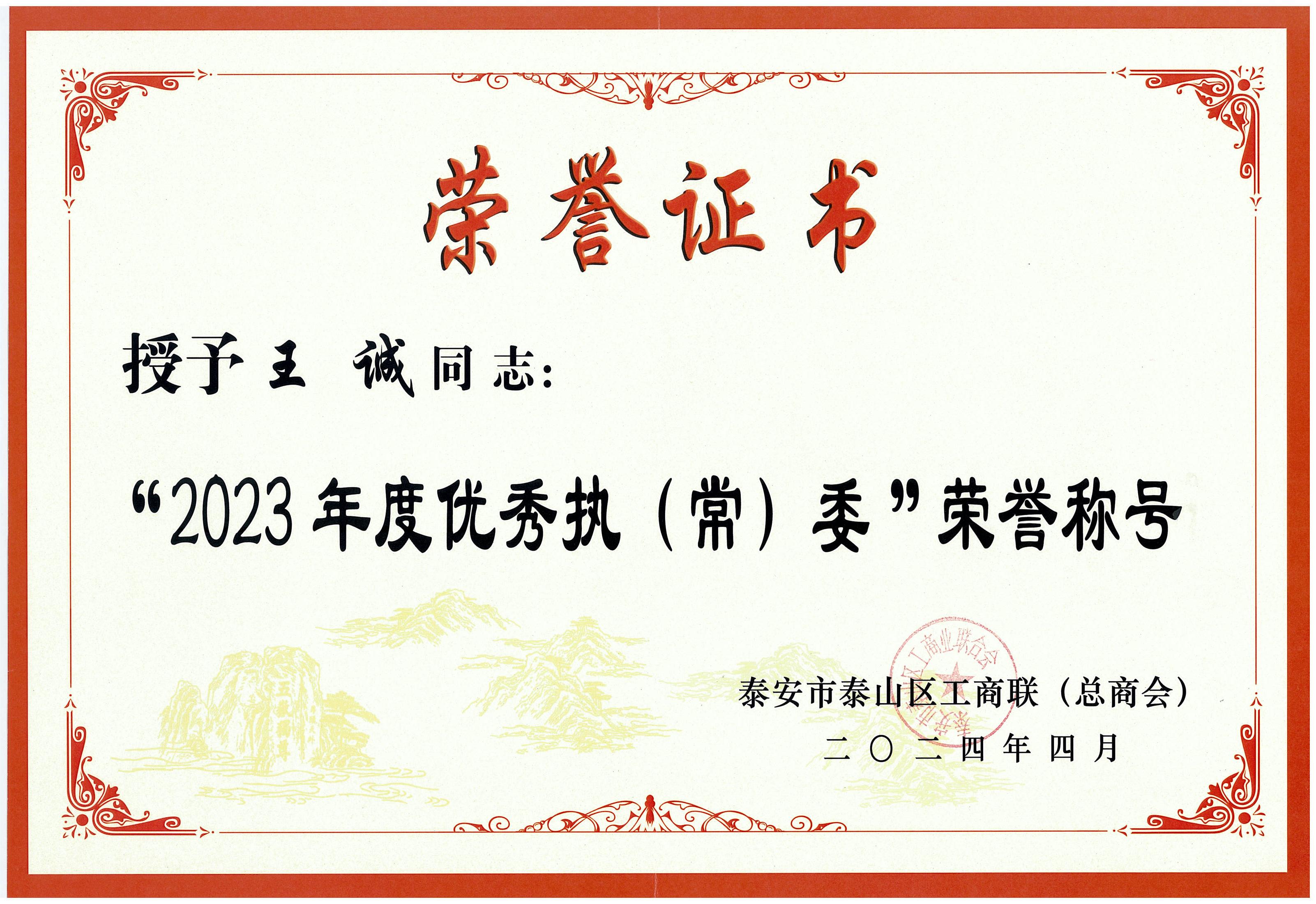 2024-5-14 董事長王誠榮獲泰山區工商聯“2023年度優秀執(常)委”榮譽稱號
