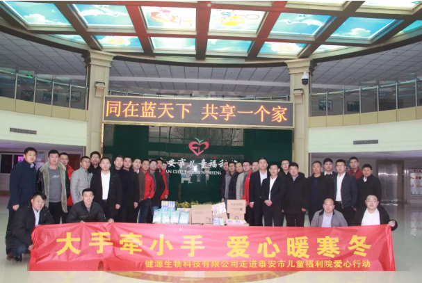 2019-1-4 山東健源生物走進(jìn)福利院為孩子們送溫暖—大手牽小手,愛心暖寒冬