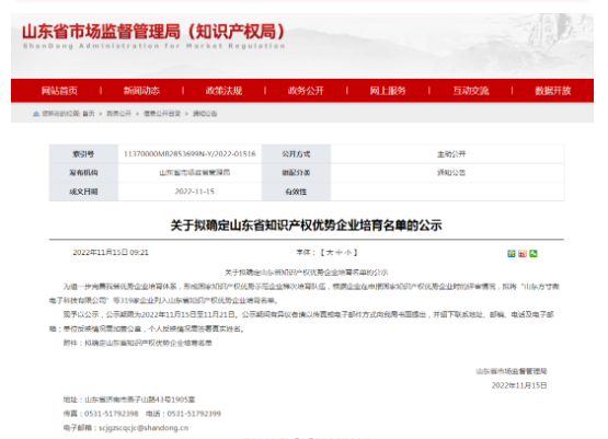 祝賀山東健源生物列入山東省知識產權優勢企業培育名單