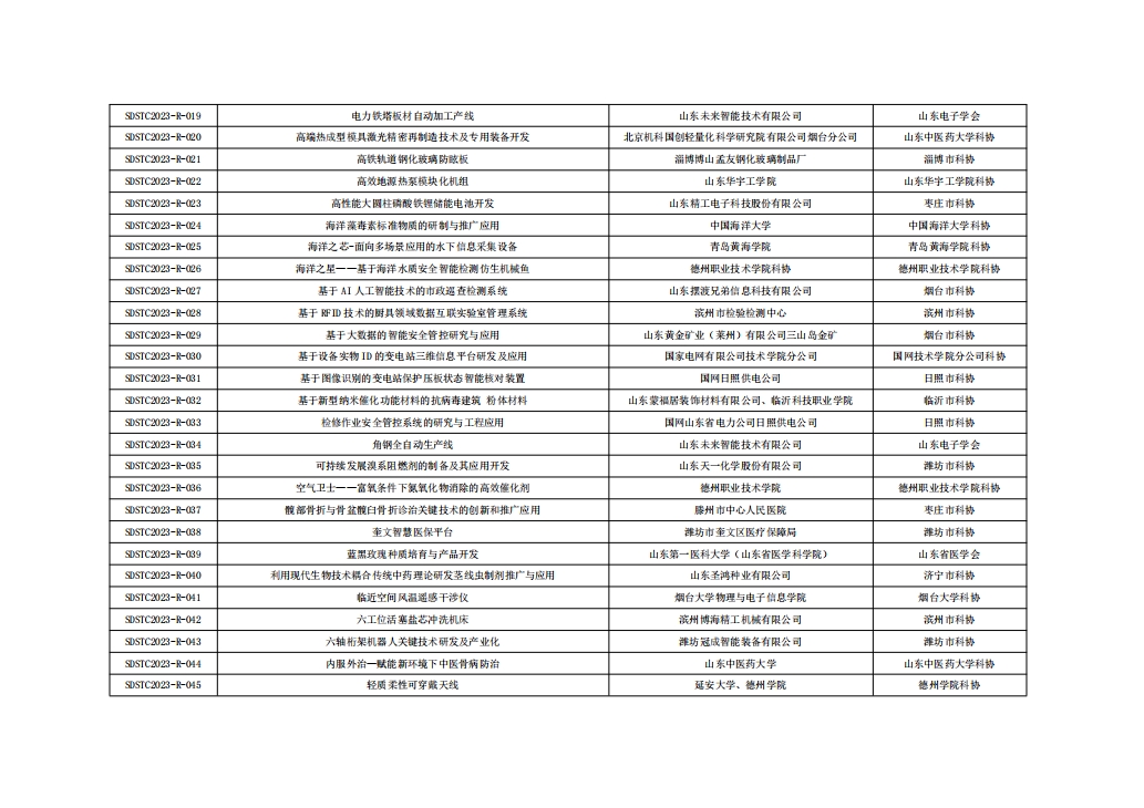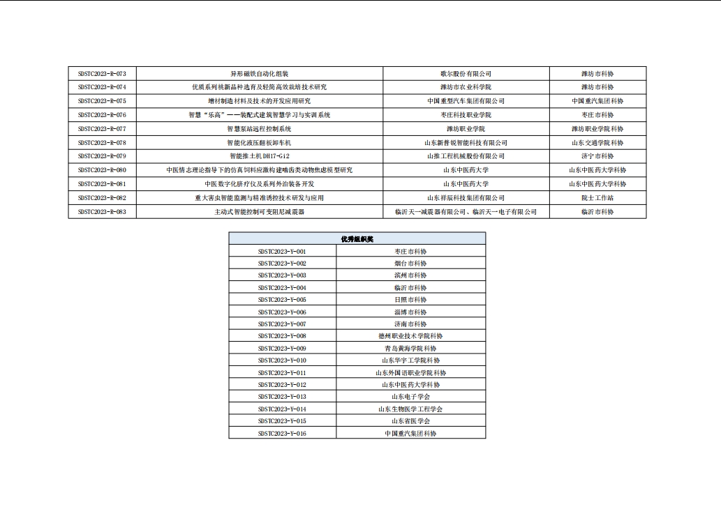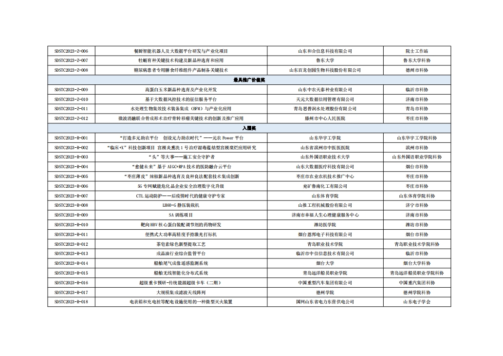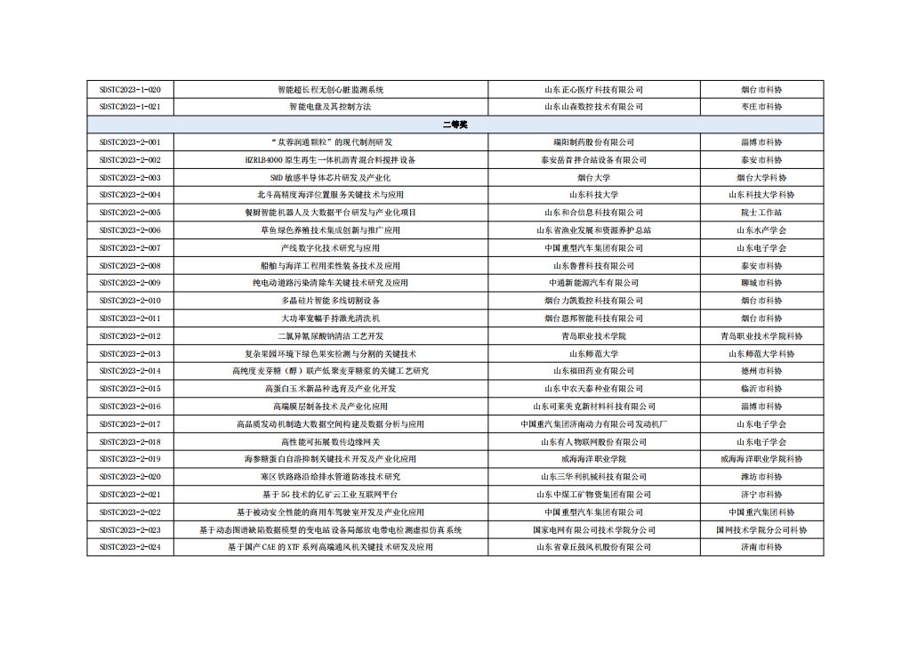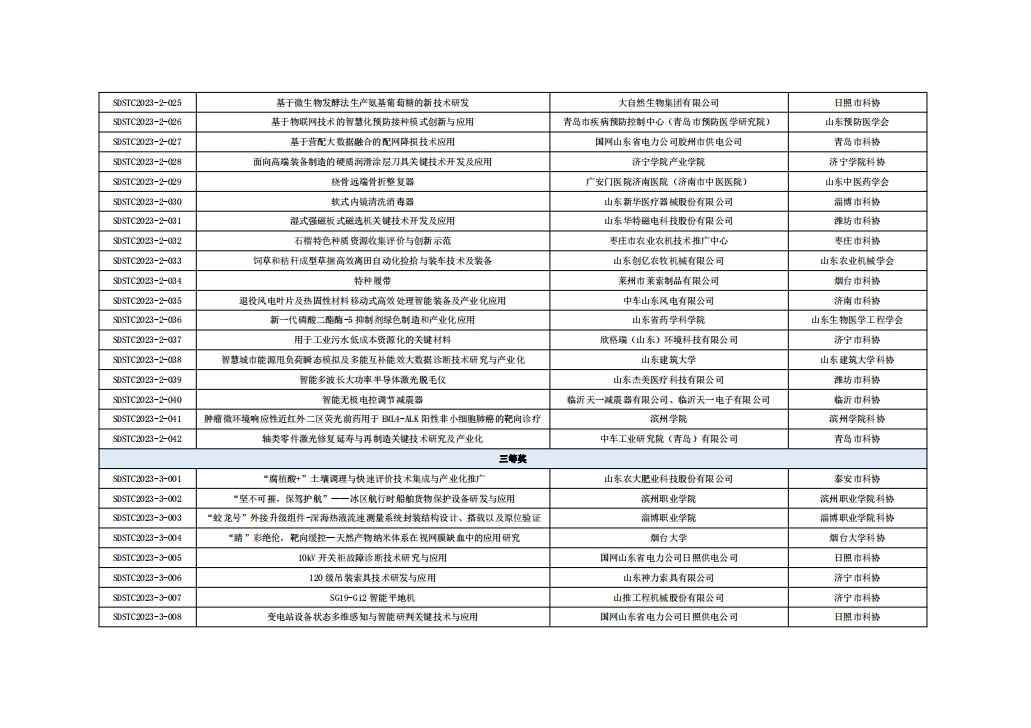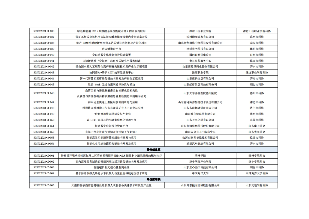 山東省第七屆科技工作者創(chuàng)新大賽獲獎名單